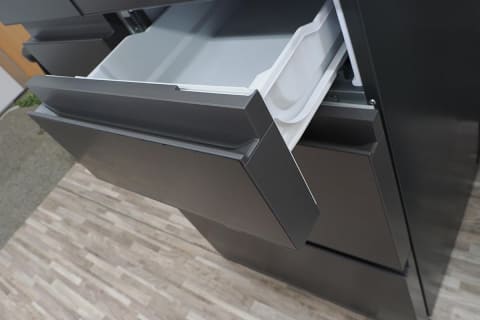冷凍室は下段1段目の「デリシャス冷凍」で、大型アルミトレイが食品の熱を奪い、素早く冷凍。冷凍室下段1段目と2段目では「霜ブロック」により霜つきを抑えて冷凍する。