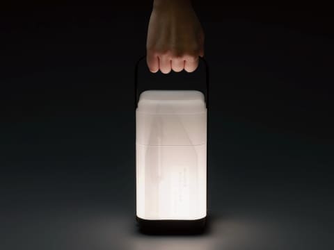 持ち手付きのため、フリーアドレスなどオフィス内での移動や、ランタンとして使う際にも明かりを運べて便利。