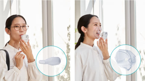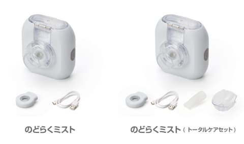 また、化粧が崩れにくく眼鏡が曇らない「マウスピース型」と、吸入力が弱い子供や高齢者でも吸入しやすい「マスク型」の吸入パーツを付属した「トータルケアセット」も用意。価格は6,980円。
