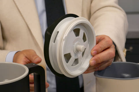 ほったらかしでなめらかなポタージュスープが作れると好評の「自動調理ポット」の容量を4~5人前までアップ。モーターも進化させ、より細かな制御ができるように。新たに、具材のごろごろ感を残した「たべるスープ」も作れるようになった。