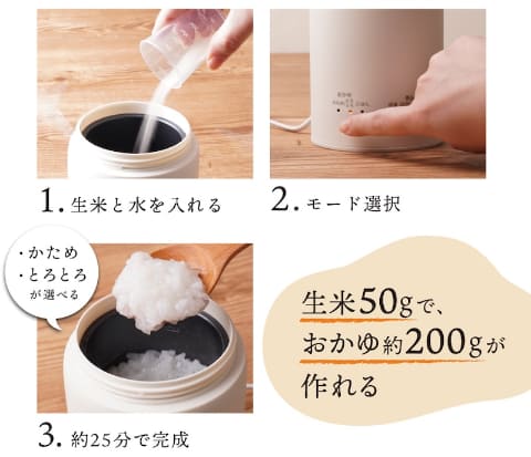 ヒーターでじっくりと煮込むため、お米が柔らかく本格的な「とろとろお粥」が作れるという。