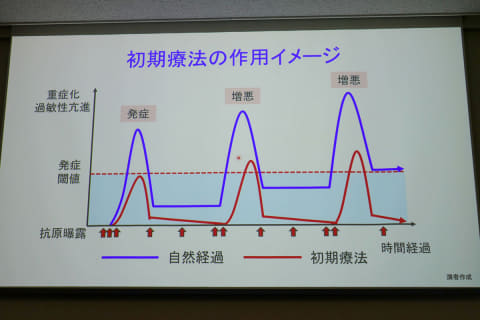 一方、初期療法を行なうことで発症を遅らせ、重症化を抑えることができるそうだ。初期療法には抗ヒスタミン薬や鼻噴霧用ステロイド薬がよく用いられ、抗ヒスタミン薬による初期療法では、花粉総飛散数が2,000個/cm2以下の少量~中等度飛散であれば、重症化ゼロが期待できるとしている。