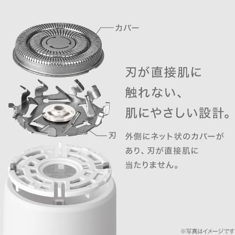 スイッチ操作が不要な「接触起動式」を採用したシェーバー。ネット状のカバーで刃が直接肌に触れずに使える。カバーが肌に触れると自動で電源が入るため、ムダ毛が気になったときにすぐ使用できる。USB充電式で、子供から大人まで使いやすいシンプルな設計としている。