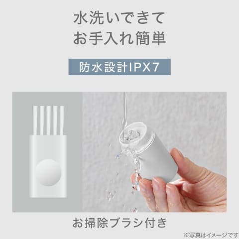 IPX7の防水仕様により、本体は丸洗いが可能。ヘッドは取り外して洗えるため、使用後も清潔に保てる。