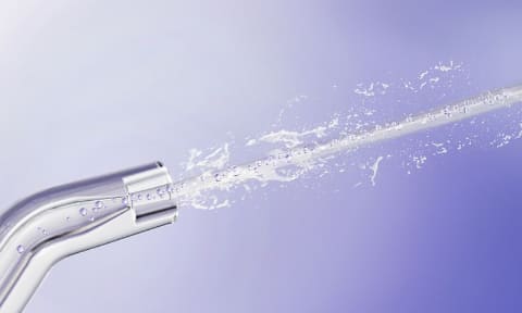水圧はLOW/MIDDLE/HIGHの3段階で調整可能。使い始めは弱め、慣れてきたら強めなど、口腔内の状態に応じて使い分けられる。