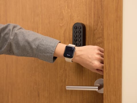 日本初のApple Home Key対応スマートロック。Home Keyをウォレットに追加すれば、iPhoneやApple Watchをかざすだけで解錠できる。Home Keyは共有できるため、家族や友人もタッチ入室が可能。エクスプレスモードをオンにするとNFCタッチでも解錠でき、iPhoneの充電が切れても解錠できるという。