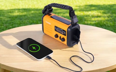 サンコーの手回し充電ラジオ 懐中電灯やスマホ充電にも