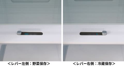 冷蔵室最下段には、保存する食材に応じて温度調節が可能な「マルチケース」を搭載。野菜や加工食品など、用途に合わせた使い分けができる。
