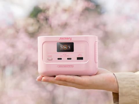 Jackery Japan(ジャクリ)は、飛行機内にも持ち込める小型ポータブル電源「Jackery Explorer 100 Plus」から、春らしい限定カラー「チェリーブロッサム」を2月10日に発売した。価格は15,900円。発売記念セールとして、2月26日まで最大35%オフで購入できる。さらに購入者の先着1,000名はオリジナル桜ステッカーがもらえる。