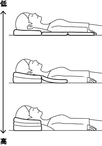 その日の体調や好みに合わせて調整できるほか、低め、普通の高さでは肩から背中まで敷いて使用できる。