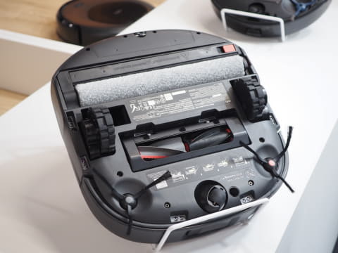 新搭載のローラーモップは、約1kgの圧力で床を押して拭くことで、こびりついたしつこい汚れも除去。カーペットなどを検知するとモップが自動で約10.8mm持ち上がり、水拭き中でもカーペットを濡らすことがないとする。