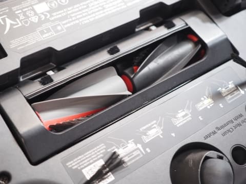 また同ローラーモップは水拭きモードの場合、常に水分を含みつつ回転し、床を拭いた直後には本体内の「HydroJet システム」により、走行中も常に洗浄する仕組み。