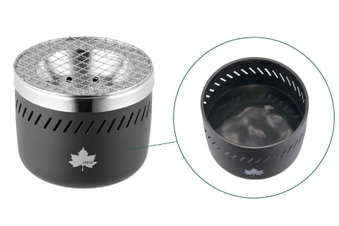 卓上で炭火焼きをたのしめるコンロ。炭火が持つ遠赤外線効果で肉や野菜をおいしく焼き上げることが可能。キャンプやベランダなど、さまざまなシーンで活躍する。