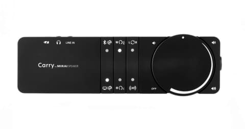 ミライスピーカーは、テレビと音楽の両方を楽しめるワイヤレススピーカー「Carry by MIRAI SPEAKER(キャリー・バイ・ミライスピーカー)」を、3月3日より発売する。直販価格は24,750円。