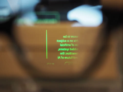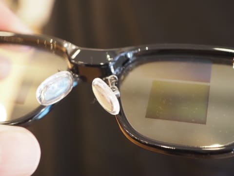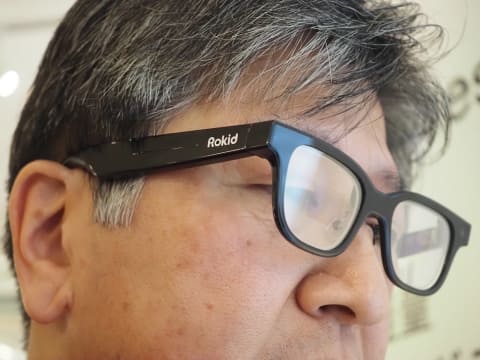会場で実際に装着した際は、専用アプリを起動したスマートフォンと連携させると、レンズ面にディスプレイが表示された。「Hi Rokid. 原宿駅から神保町駅までの行き方を教えて」と話しかけると、音声認識で話した内容が表示された。その時は不具合で結果は表示されなかったが、通常はAIによる回答が表示されるという。数分間使った雰囲気では、違和感を感じることもなく、一般的な眼鏡と変わらない装着感だった。
