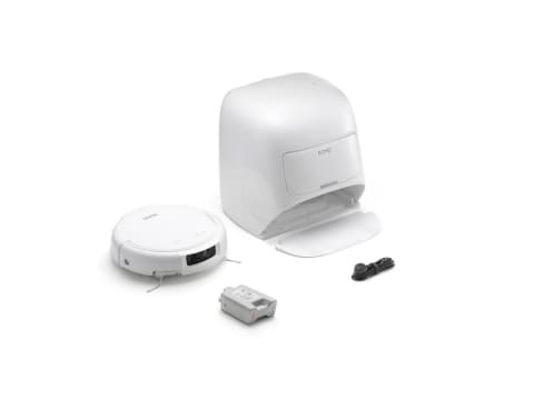 ベースステーションはセルフクリーニング機能を搭載。4つの高圧ウォータージェットと直径16mmの吸引ポートにより洗浄板を清掃。最大200日間メンテナンスフリーだとする。このほか、3段階の防音システムにより、集塵時の騒音を最大80%低減する。