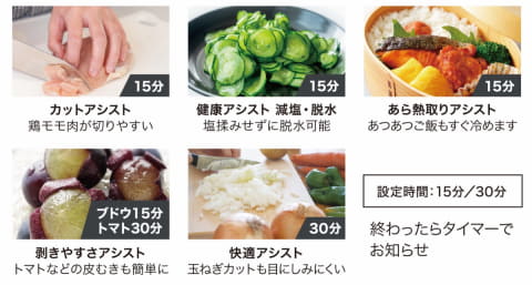 さらにAQR-TXA50Aには、冷凍室で調理の下準備を効率化する「クッキングアシスト」機能も新たに追加。15分/30分で食材の表面を微凍結させ、鶏もも肉をカットしやすくしたり、玉ねぎを切っても目にしみにくくしたりできるという。