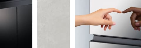 奥まで手が届きやすい薄型設計と、日常を彩る洗練されたデザインも特徴とする。AQR-TXA50Aの表面には指紋が付きにくい上質なフロストガラスを使用し、AQR-TX51Aは石目調ガラスとミラーガラスを展開。