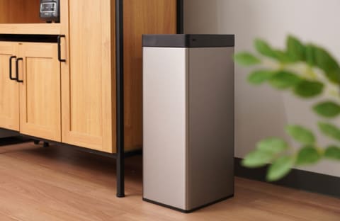 手をかざすと蓋が自動開閉するセンサー式で、調理中など手が汚れている時でも使いやすく衛生的。また、ボタン開閉に設定変更することも可能。