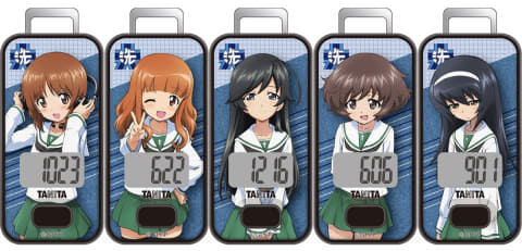 同作のテレビシリーズ、劇場版、OVA(オリジナル・ビデオ・アニメ)に登場するキャラクターをデザインした歩数計。主人公の西住みほが所属する大洗女子学園からライバル校まで幅広いキャラクターをラインナップ。