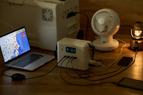 出力は最大200W(瞬間最大400W)に対応しており、スマートフォン(3,000mAh/約11Wh)は約21回、ノートパソコン(70Wh)は約3回、タブレット(30Wh)は約8回充電可能。また、ポータブル冷蔵庫(30W)は約7.8時間、電気毛布(10W)は約23.3時間使用できるため、緊急時も最低限の電力を確保できるという。