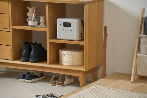 部屋に置いても場所を取らず、シンプルなデザインのためインテリアにも馴染む。手元を照らせるLEDライト、電池残量をひと目で確認できる液晶パネルも搭載。