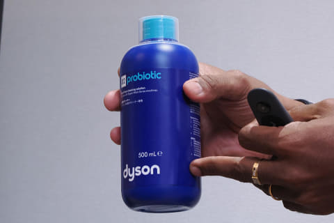 専用の床洗剤として「Dyson 02 Probiotic 床用クリーナー FF03」を別売で用意。ドックに投入することで、本体に自動で補充して清潔性を高める。クリーナーの直販価格は3,500円。