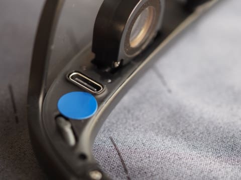 充電は本体フレームに配置されたUSB Type-Cポートで行なう。充電時間は約3時間、連続使用可能時間は最大15時間。