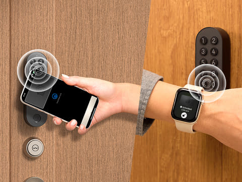iPhoneやApple Watchの「ウォレット」アプリにホームキーを追加し、「ウォレット」アプリ内でエクスプレスモードを有効にすると、あとはiPhoneなどをキーパッドにかざすだけで、解錠できる。アプリの立ち上げが不要なため、スムーズに解錠可能。また、iPhone搭載の予備電力機能により、万が一帰宅前に充電が切れてしまっていても、同様にキーパッドにかざすことで解錠できるという。