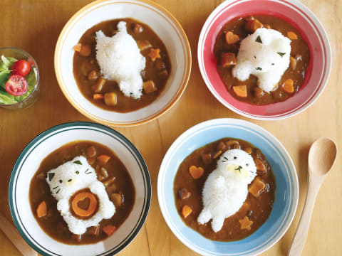 ごはんを詰めてひっくり返すだけで、あざらし、くま、いぬ、ねこといった動物の立体的なフォルムに成形できるアイテム。日常の食卓やお弁当を楽しく演出できる。いずれもポリプロピレン製で、耐熱温度は約120℃。食器洗い乾燥機に対応する。本体は日本製。