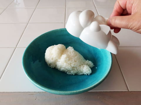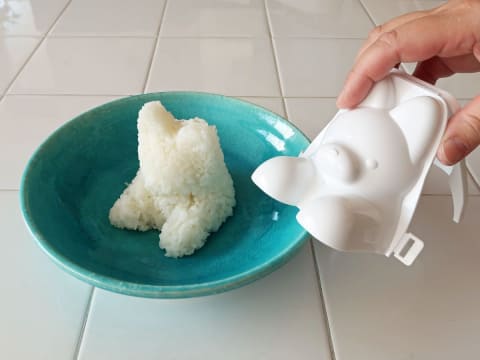 「ふせするワンワンごはん型」は、容器が開閉する構造を採用し、耳や脚など細部までごはんを詰めやすい設計。ふっくら丸みもきれいな立体型に盛り付けられる。ごはんの量は約200g。