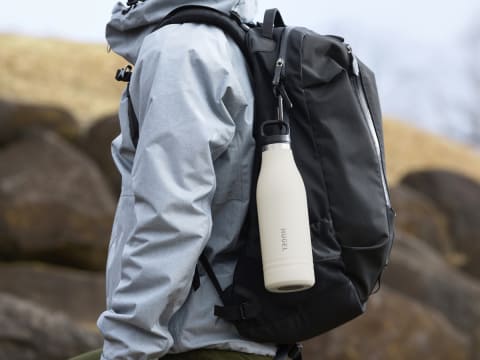 750mlモデル「HSB-750」の本体サイズは約8×27.4cm(直径×高さ)。重さは約320g。最大保温約24時間/保冷約30時間。6時間の保温/保冷効力は80℃以上/6℃以下。カラーはアッシュホワイト、チャコールグレーの2色。