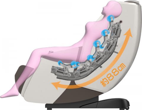 最大153度までリクライニング可能なシートと、約88cmのロングストロークを実現したL字フレーム構造を採用。首からお尻までをしっかりとケアし、全身をなめらかにほぐせるという。