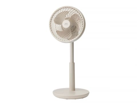 「DCコンパクトフロアファン」は、静音と省電力を両立したコンパクトなリビングファンで、微風からパワフル送風まで12段階の調節と自動首振りに対応する。価格は13,200円。