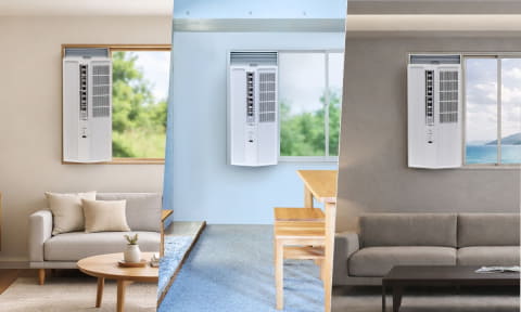 窓にはめ込むだけで設置できるため工事が不要で、室外機が置けない環境でも利用できる窓用エアコン。