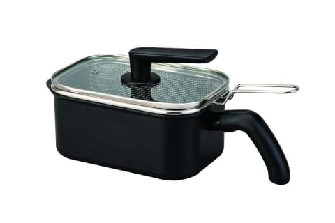 また、角型形状のため、エビフライやトンカツなどの大きな食材も調理しやすい。従来の丸型と比べて開口部が広く、揚げ物や茹で調理の利便性が向上した。