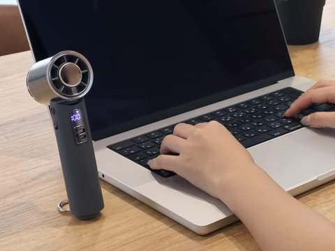 風量を100段階で調整でき、1度の充電で最大9.5時間の使用が可能。内蔵バッテリーの容量は4,000mAh(14.8Wh)で、USB Type-Cでの充電時間は約4時間。