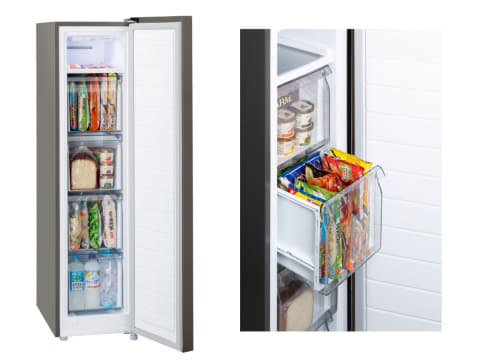 定格内容積108Lの冷凍庫。横幅364mmのスリム設計に加え、壁にぴったり設置できるため、キッチンやリビングの限られたスペースにも設置しやすい点が特徴。
