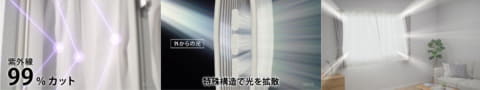 また、遮熱機能により外気の影響を受けにくく、夏は冷房効率を高め、冬は暖気を逃がしにくくすることで、快適な室内環境づくりに貢献する。紫外線をカットするため、家具や床の日焼け対策にも役立つ。