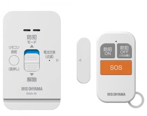 また、付属のリモコンによる遠隔操作にも対応。不審な人物や物音に気づいた際に「SOS」ボタンを押して任意で警報を作動させることができる。