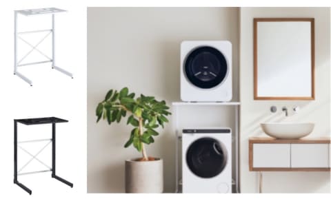 さらに別売の衣類乾燥機用ラック(JZ-R02A)を使えば、全自動洗濯機やドラム式洗濯機と縦置きで設置することが可能。