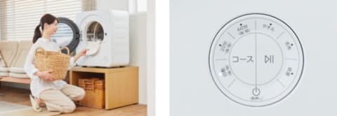 操作部はシンプルなタッチパネル式で、直感的な操作が可能。運転モードは「自動(強/弱)」「タイマー20分(強/弱)」「タイマー60分(強/弱)」「タオル」「毛布」に加え、乾いた衣類を除菌できる「除菌」の計6コースを搭載する。