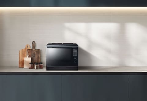 本体サイズは498×399×399mm(幅×奥行き×高さ)。オーブンの消費電力は1,460W。年間消費電力量は72kWh/年。レンジ出力は1,000W/600W/500W/200W/100W連続に対応。オーブンは熱風循環加熱方式を採用し、100~300℃、最高350℃まで設定可能。本体カラーはブラックとルナホワイトの2色を用意する。