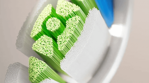 付属の「ホワイトプラスブラシヘッド」を使用することで、手磨きと比べて最大5倍の歯垢除去力を発揮するほか、ひし形に密集した毛先がコーヒーやワインなどのステイン(着色汚れ)を除去する。