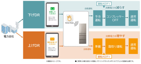 パナソニックは中部電力ミライズと共同で、電力需給の最適化に応じて冷蔵庫の稼働を自動で制御する「デマンドレスポンス(以下、DR)自動運転サービス」を開発。4月15日より申込受付を開始する。