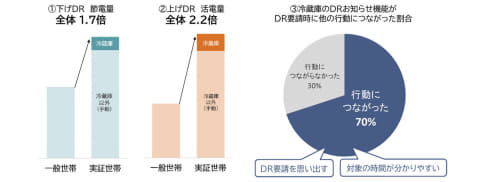 この通知によって、DR要請時間中であることがわかりやすくなり、例えば下げDR時にはエアコンを弱めるといった自主的な行動を促すきっかけになることが期待されている。中部電力ミライズとの共同実証では、被験者の7割が「お知らせ機能がほかのDR要請に応える行動につながった」と回答し、下げDR/上げDRの両方で行動変容が確認されているという。