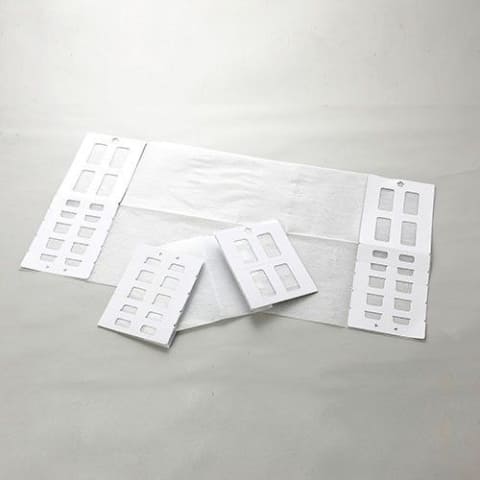 両端に厚紙枠を備えた不織布フィルターを採用し、置くだけで取り付けが完了する。フィルターには抗菌加工を施した。