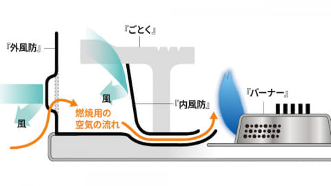 従来モデルから、遮風構造「ダブル風防ユニット」と、炎が風に流されにくい「多孔式バーナー」を継承し、風で炎が消えにくい優れた耐風性能を備える。そのうえで、新モデルはソロキャンプなどに持っていきやすいコンパクトなサイズにしている。