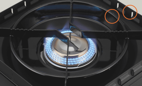 新型の「X形状のごとく」を採用。従来モデルでは、鍋底の直径が11cm未満の調理器具を使用できなかったが、新モデルでは直径6cm以上であれば小さなクッカーでも安定して使用可能になった。これにより、シェラカップや小型クッカー、コーヒーケトルなどを用いた、幅広い調理に対応できる。