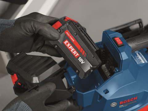 電源はDC18Vで、プロ用18V充電式専用バッテリーを使用する(DIY用18V充電式バッテリーは使用不可)。例えば、バッテリー容量が8Ahの「EXPERT 18V 8.0Ahバッテリー EXBA18V-80」の価格は40,000円(税別)。いくつかの対応充電器のうち「PRO GAL 18V-40」の価格は14,000円(税別)。